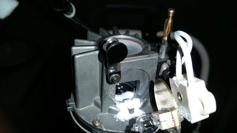 Contaminação Óptica: Modelos de baixa qualidade podem se degradar com o calor e soltar resíduos. Essa "sujeira" impregna todo o sistema óptico, exigindo uma limpeza técnica complexa e cara.